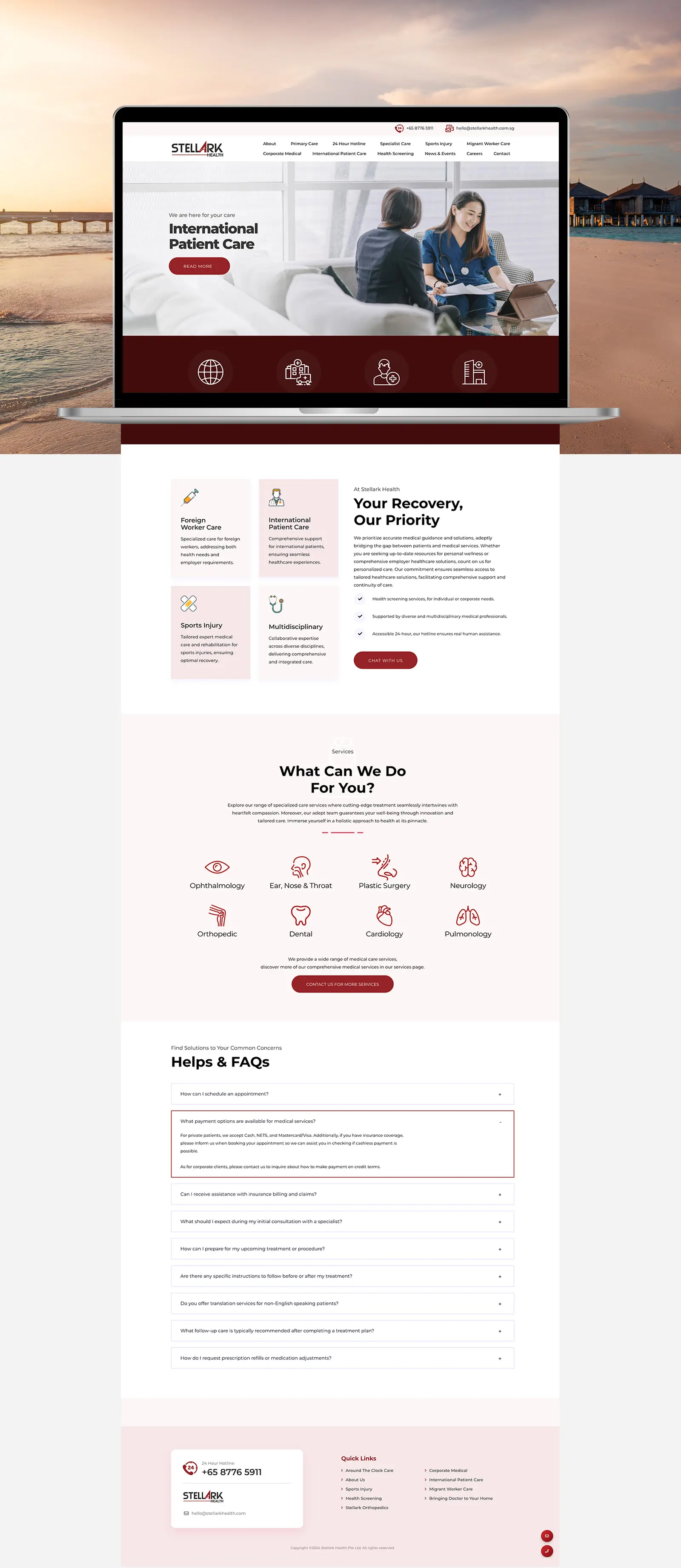 Stellark Health was already a trusted healthcare provider. They offered specialized treatments, health screenings, GP consultations, and even home doctor services. Patients from Singapore, Johor Bahru, Batam, and across Southeast Asia relied on the clinic for accessible, quality healthcare. The challenge was to build a digital presence that reflected this breadth of services while showcasing their patient-first philosophy. The website had to go beyond basic functions. In addition, it needed to tell the full story from routine check-ups to advanced medical care while building credibility for international patients considering medical travel.